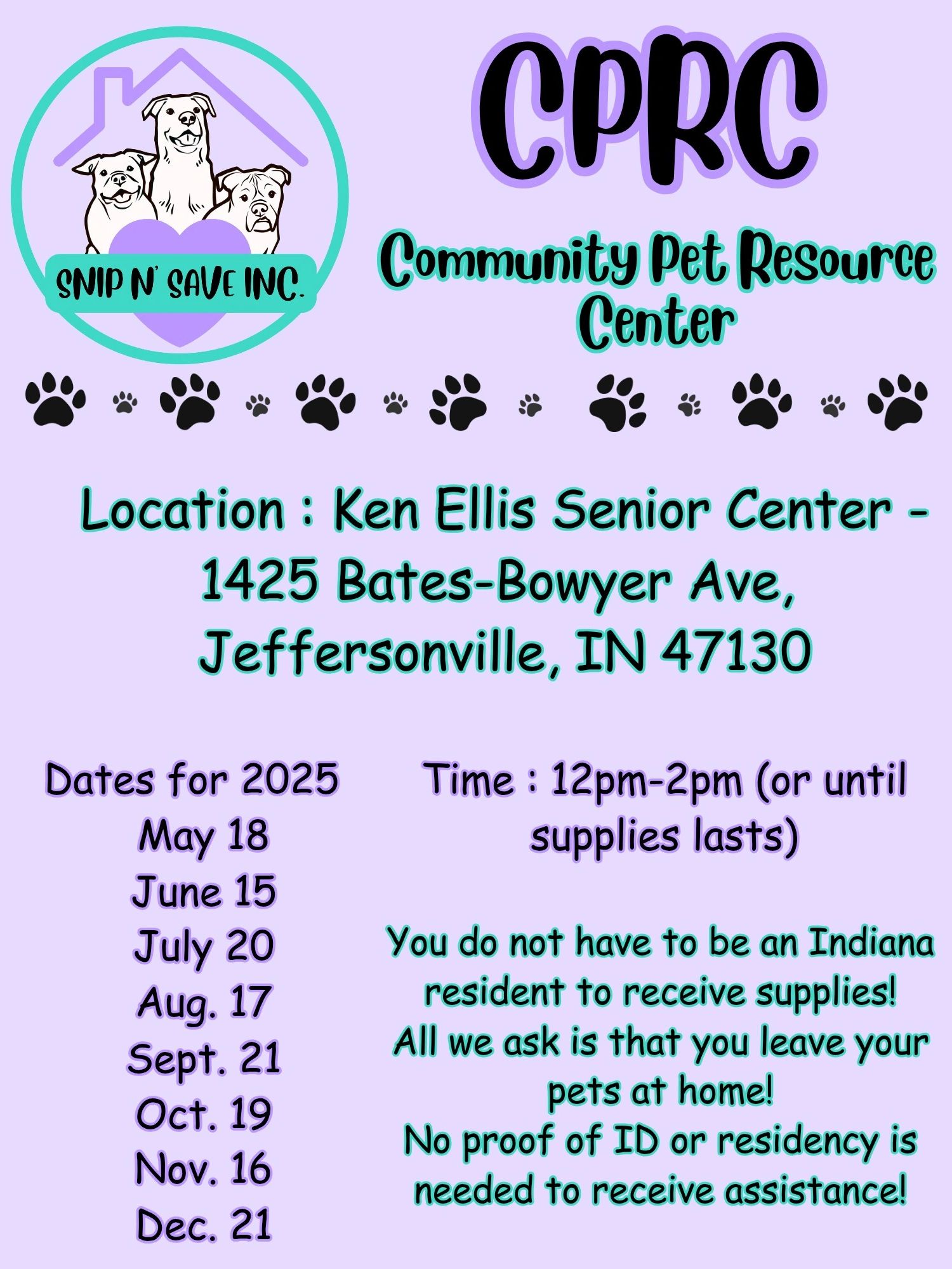 We’ll have dog & cat food, cat litter, leashes, collars, bowls, flea/tick medicine, and more—all available at no cost. You do not have to be a Jeffersonville resident to receive assistance.